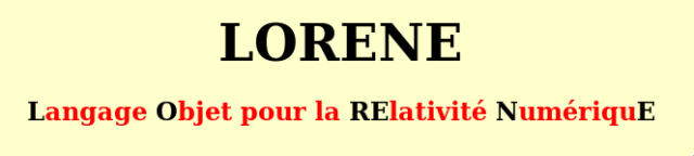 | Lorene : Set of C++ classes to solve various problems arising in numerical relativity, and more generally in computational astrophysics. It provides tools to solve partial differential equations by means of multi-domain spectral methods. Scientific results obtained by means of LORENE are reported here. LORENE classes implement basic structures such as arrays and matrices, but also abstract mathematical objects, such as tensors, and astrophysical objects, such as stars and black holes. Note that, as a research software, LORENE is under perpetual development |